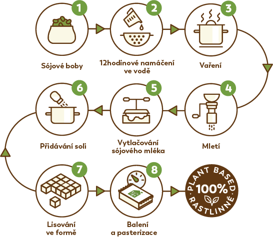 Jako jediný dodavatel na český a slovenský trh vyrábíme tofu srážením vápenatých solí, proto má naše tofu vysoký obsah vápníku (200 mg na 100 g tofu).