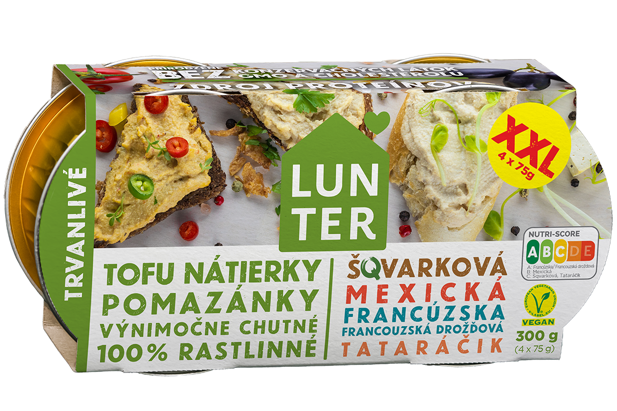 Tradiční LUNTER Tofu pomazánky si můžete vychutnat jak čerstvé v oblíbeném střívku, tak v nové řadě PREMIUM, která je ještě zdravější, chutnější, větší a ještě výhodnější, a to v plastovém recyklovatelném kelímku. Najdete je v chladicích boxech prodejen potravin. Vychutnejte si také trvanlivé LUNTER Tofu pomazánky v oblíbených příchutích, bez potřeby chlazení, v hliníkovém obalu, které najdete v klasickém regálu.
